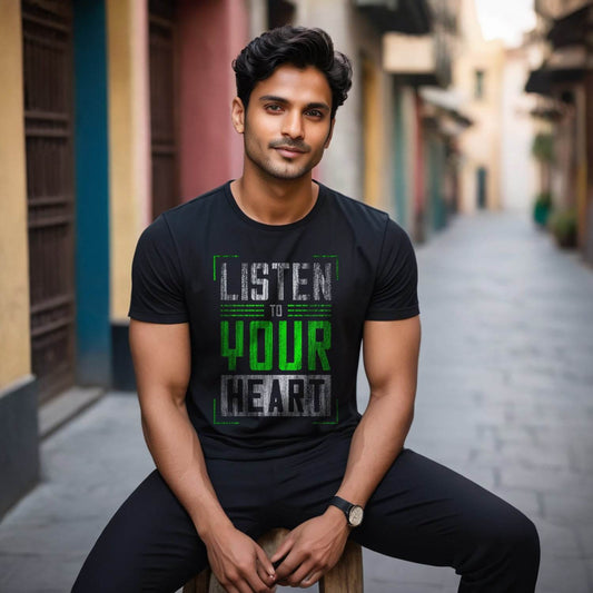 LISTEN TO YOUR HEART - Unisex Round Neck Regular Fit 100% Combed Cotton Half Sleeve T-Shirt