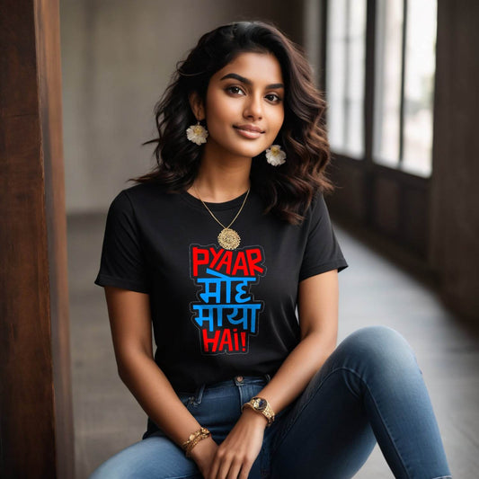 Pyaar Moh Maya Ha - Unisex Round Neck Regular Fit 100% Combed Cotton Half Sleeve T-Shirt