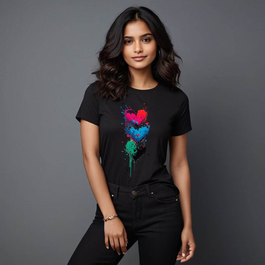 Abstract Colorful Acryl Hearts - Unisex Round Neck Regular Fit 100% Combed Cotton Half Sleeve T-Shirt