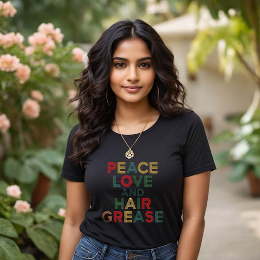 PEACE LOVE AND HAIR GREASE - Unisex Round Neck Regular Fit 100% Combed Cotton Half Sleeve T-Shirt