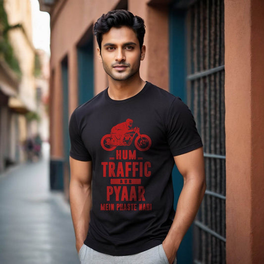 HUM TRAFFIC OR PYAAR MEIN PHASTE NAHI- Unisex Round Neck Regular Fit 100% Combed Cotton Half Sleeve T-Shirt