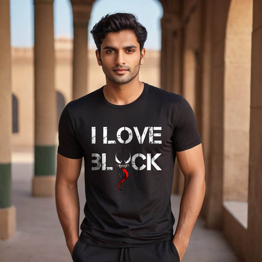 I LOVE BLACK - Unisex Round Neck Regular Fit 100% Combed Cotton Half Sleeve T-Shirt