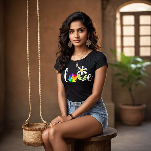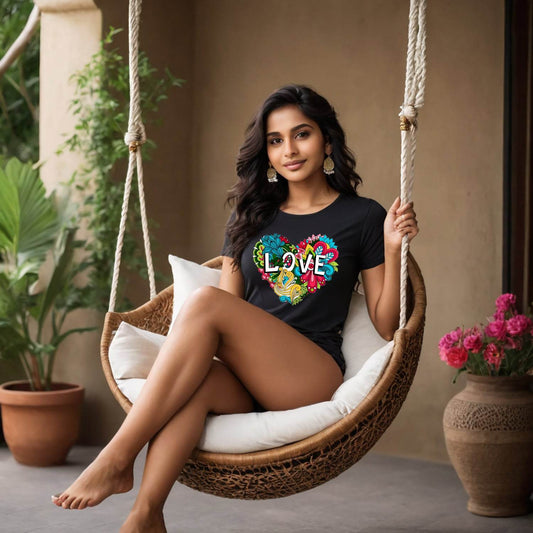 Heart Love - Unisex Round Neck Regular Fit 100% Combed Cotton Half Sleeve T-Shirt