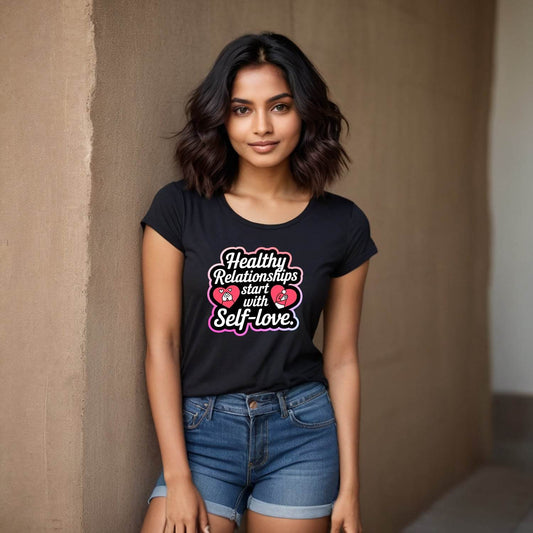 Healthy Relationships start with Self-love - Unisex Round Neck Regular Fit 100% Combed Cotton Half Sleeve T-Shirt