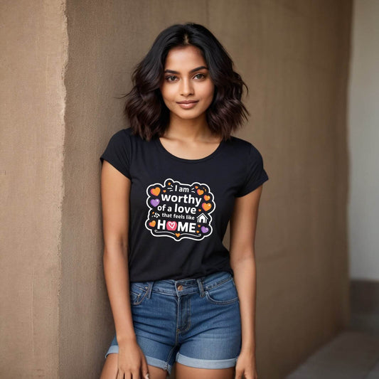 I Am Worthy Of A Love That Feels Like HOME - Unisex Round Neck Regular Fit 100% Combed Cotton Half Sleeve T-Shirt