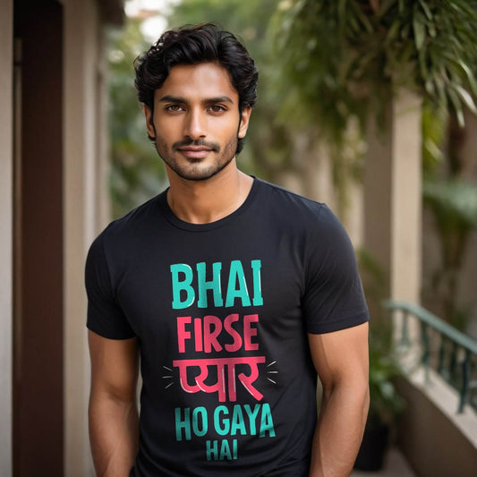 BHAI FIRSE PYAAR HO GAYA HAI - Unisex Round Neck Regular Fit 100% Combed Cotton Half Sleeve T-Shirt