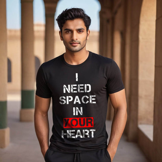 I NEED SPACE IN YOUR HEART - Unisex Round Neck Regular Fit 100% Combed Cotton Half Sleeve T-Shirt