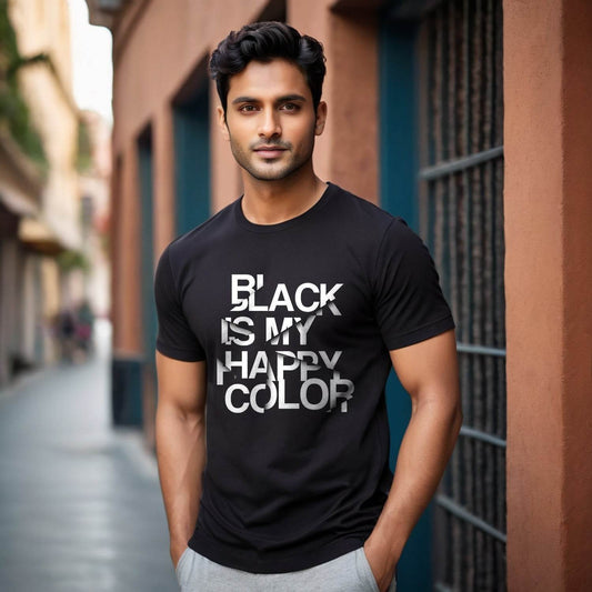BLACK IS MY HAPPY COLOR - Unisex Round Neck Regular Fit 100% Combed Cotton Half Sleeve T-Shirt