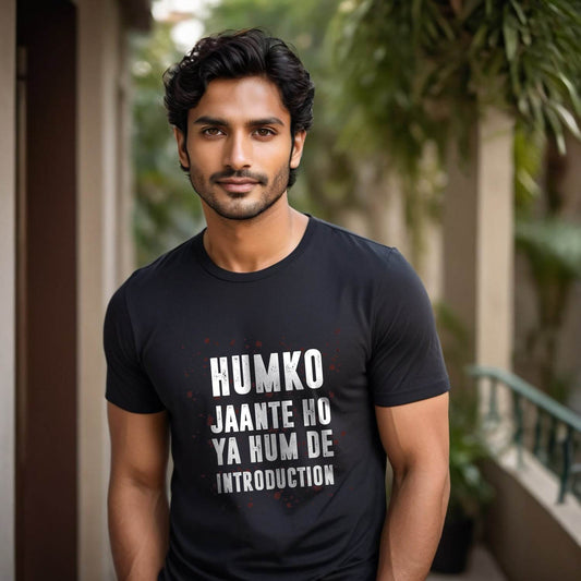 HUMKO JAANTE HO YA HUM DE INTRODUCTION - Unisex Round Neck Regular Fit 100% Combed Cotton Half Sleeve T-Shirt