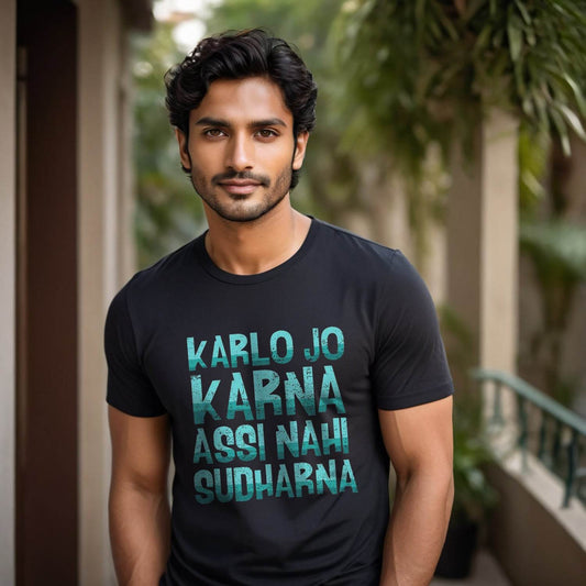 KARLO JO KARNA ASSI NAHI SUDHARNA - Unisex Round Neck Regular Fit 100% Combed Cotton Half Sleeve T-Shirt