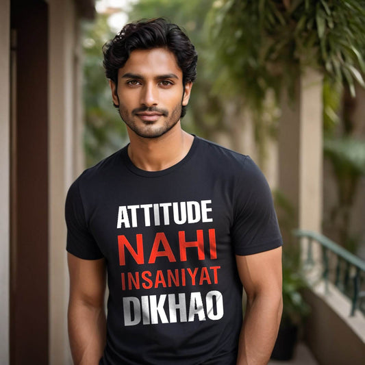 ATTITUDE NAHI INSANIYAT DIKHAO - Unisex Round Neck Regular Fit 100% Combed Cotton Half Sleeve T-Shirt