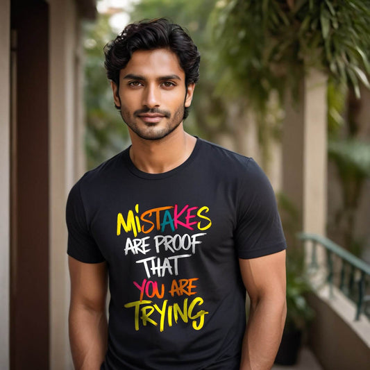 MISTAKES ARE PROOF THAT YOU ARE TRYING - Unisex Round Neck Regular Fit 100% Combed Cotton Half Sleeve T-Shirt