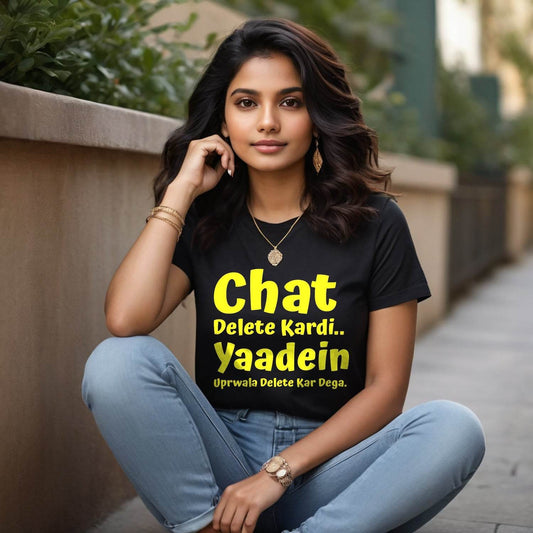 Chat Delete Kardi.. Yaadein Uprwala Delete Kar Dega. - Unisex Round Neck Regular Fit 100% Combed Cotton Half Sleeve T-Shirt