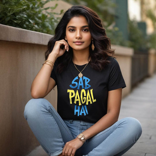 SAB PAGAL HAI - Unisex Round Neck Regular Fit 100% Combed Cotton Half Sleeve T-Shirt