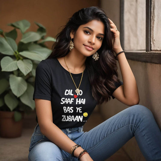 DIL TO SAAF HAI BAS YE ZUBAAN... - Unisex Round Neck Regular Fit 100% Combed Cotton Half Sleeve T-Shirt