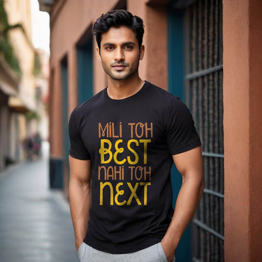 MİLİ TOH BEST NAHI TOH NEXT - Unisex Round Neck Regular Fit 100% Combed Cotton Half Sleeve T-Shirt