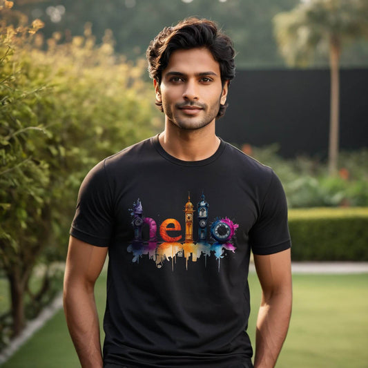 HELLO - Unisex Round Neck Regular Fit 100% Combed Cotton Half Sleeve T-Shirt