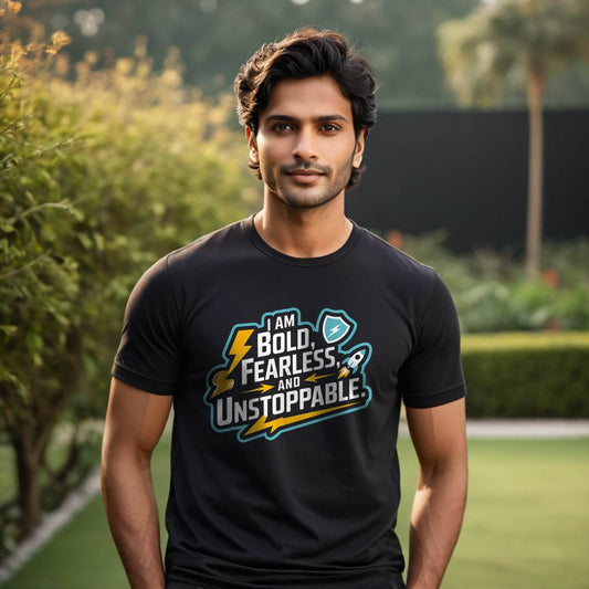 I AM BOLD FEARLESS AND UNSTOPPABLE - Unisex Round Neck Regular Fit 100% Combed Cotton Half Sleeve T-Shirt