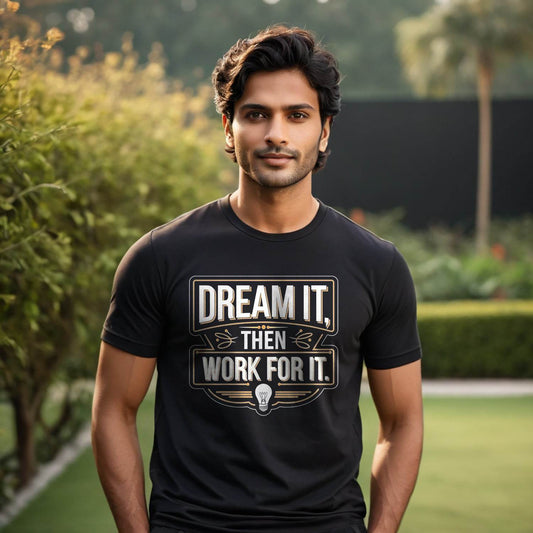 DREAM IT THEN WORK FOR IT - Unisex Round Neck Regular Fit 100% Combed Cotton Half Sleeve T-Shirt