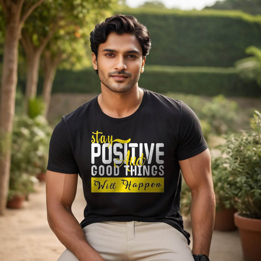 Stay Positive Good Things Will Happpen - Unisex Round Neck Regular Fit 100% Combed Cotton Half Sleeve T-Shirt