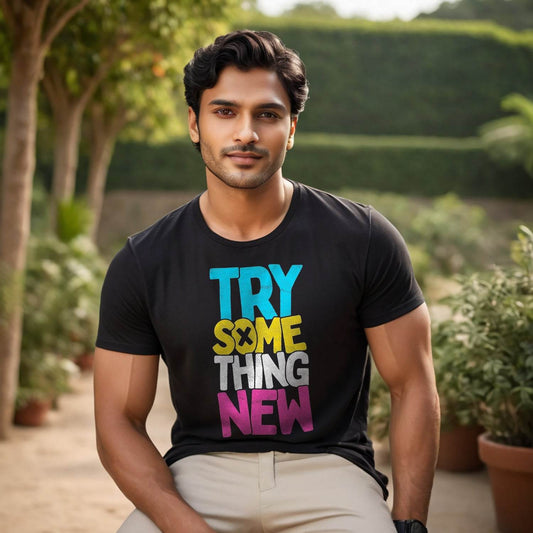 TRY SOME THING NEW - Unisex Round Neck Regular Fit 100% Combed Cotton Half Sleeve T-Shirt