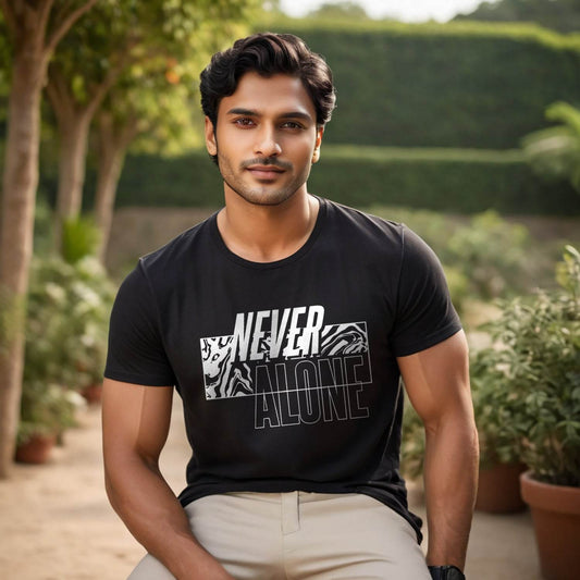 NEVER ALONE - Unisex Round Neck Regular Fit 100% Combed Cotton Half Sleeve T-Shirt