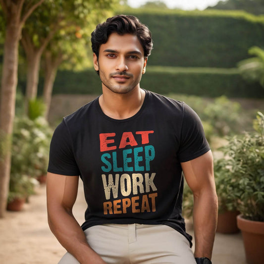 EAT SLEEP WORK REPEAT - Unisex Round Neck Regular Fit 100% Combed Cotton Half Sleeve T-Shirt