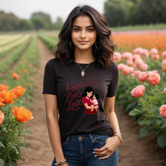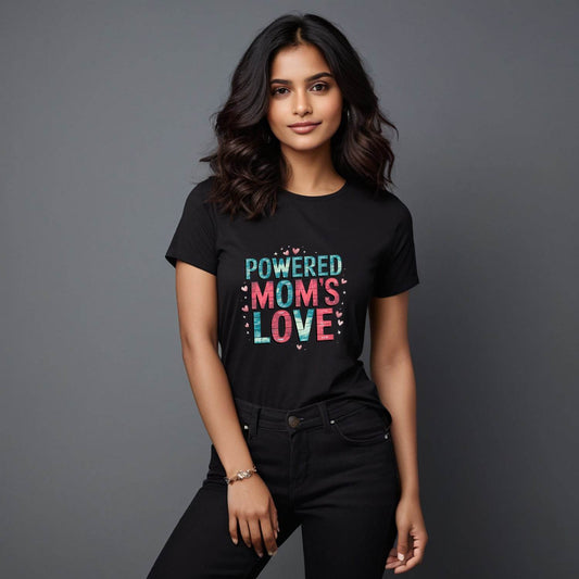 POWERED MOM'S LOVE - Unisex Round Neck Regular Fit 100% Combed Cotton Half Sleeve T-Shirt