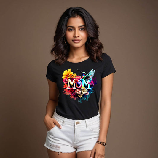 Creative Neon Letter MOM - Unisex Round Neck Regular Fit 100% Combed Cotton Half Sleeve T-Shirt