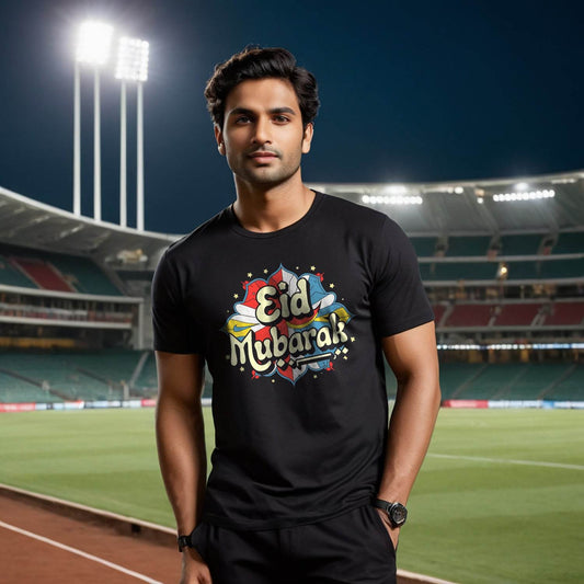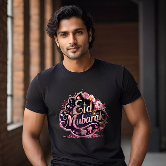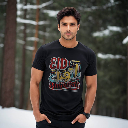 Eid Mubarak - Unisex Round Neck Regular Fit 100% Combed Cotton Half Sleeve T-Shirt