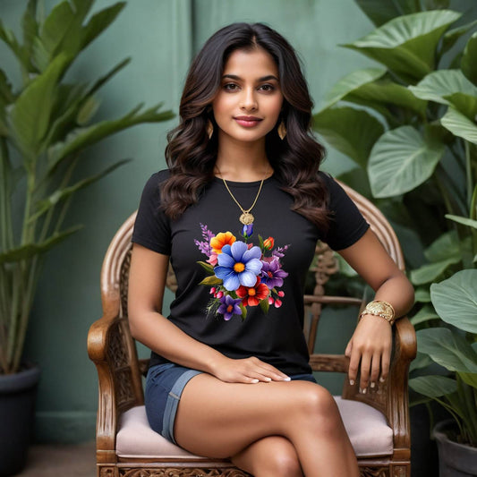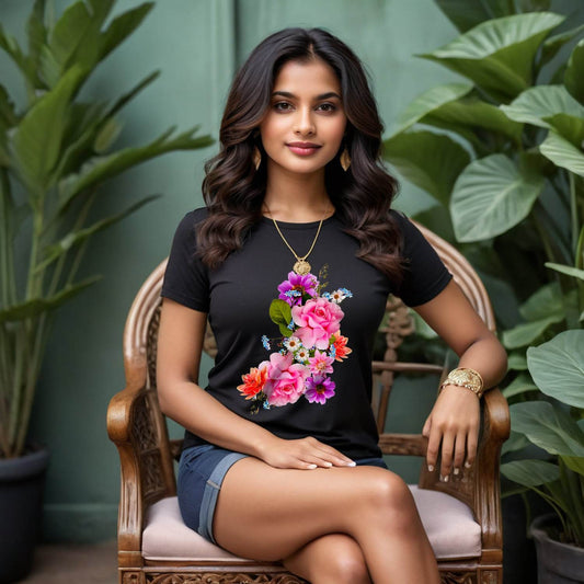 Radiant Rose Tee Psychedelic Floral - Unisex Round Neck Regular Fit 100% Combed Cotton Half Sleeve T-Shirt