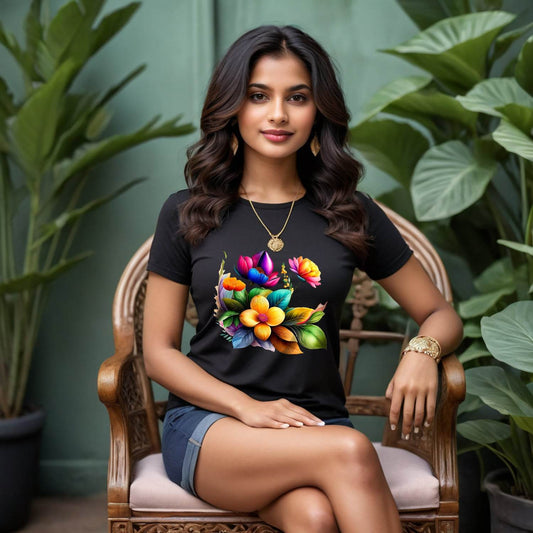 Vibrant Garden Flower - Unisex Round Neck Regular Fit 100% Combed Cotton Half Sleeve T-Shirt