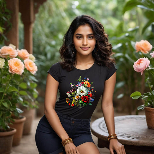 Floral Symphony - Unisex Round Neck Regular Fit 100% Combed Cotton Half Sleeve T-Shirt