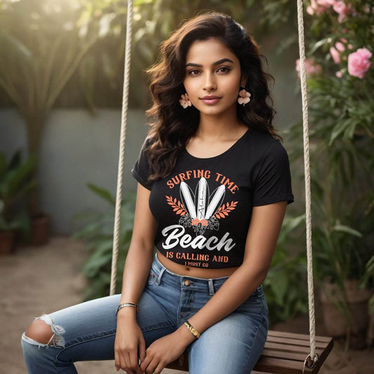 Surfing Time Beach Is Calling And I Must Go - Unisex Round Neck Regular Fit 100% Combed Cotton Half Sleeve T-Shirt