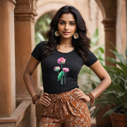 Colorful lotus flower design - Unisex Round Neck Regular Fit 100% Combed Cotton Half Sleeve T-Shirt