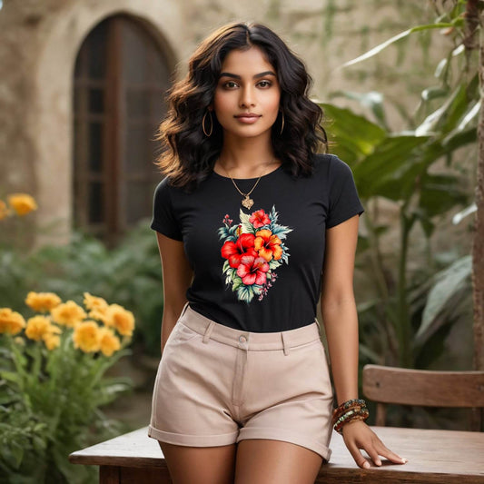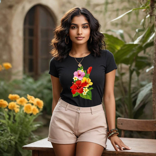 Hibiscus Bouquet Flower - Unisex Round Neck Regular Fit 100% Combed Cotton Half Sleeve T-Shirt