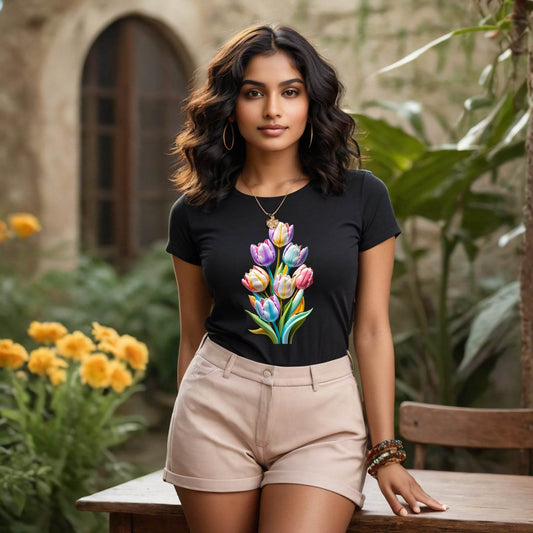 Tulips Flowers Plant Gardening Floral T-Shirt - Unisex Round Neck Regular Fit 100% Combed Cotton Half Sleeve T-Shirt