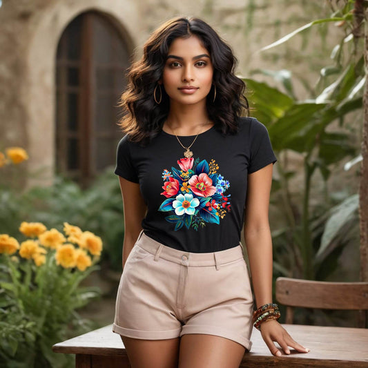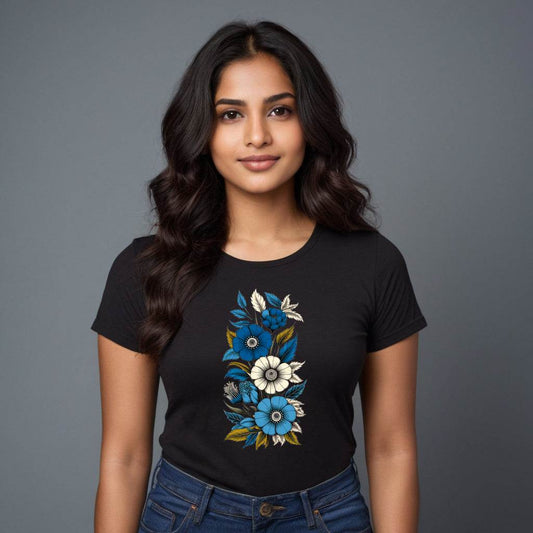 Colourful Beautiful Flowers Design - Unisex Round Neck Regular Fit 100% Combed Cotton Half Sleeve T-Shirt