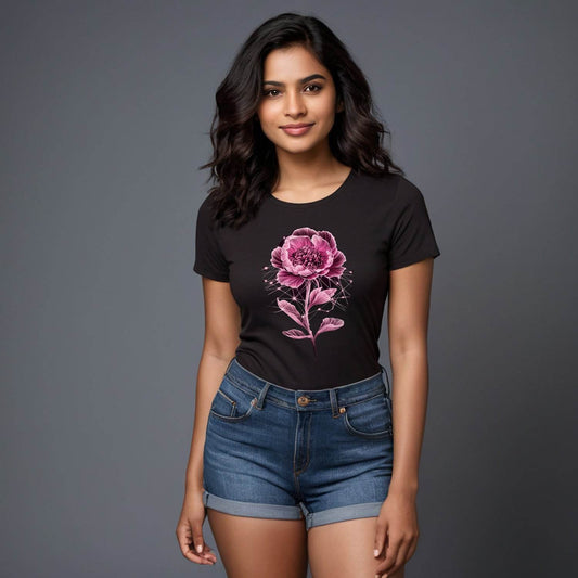 Flower Aesthetic Ornament Decoration - Unisex Round Neck Regular Fit 100% Combed Cotton Half Sleeve T-Shirt (Copy) (Copy)