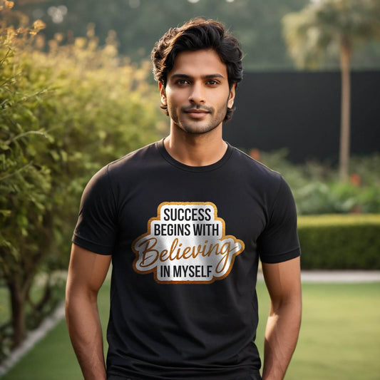 SUCCESS BEGINS WITH BELIEVING IN MY SELF - Unisex Round Neck Regular Fit 100% Combed Cotton Half Sleeve T-Shirt