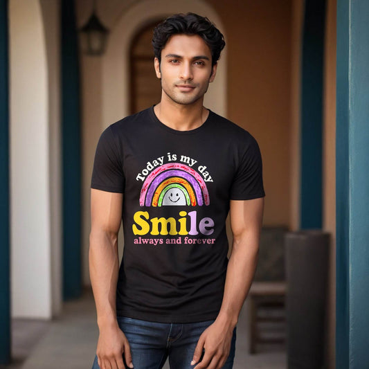 Today is My Day SMILE - Unisex Round Neck Regular Fit 100% Combed Cotton Half Sleeve T-Shirt