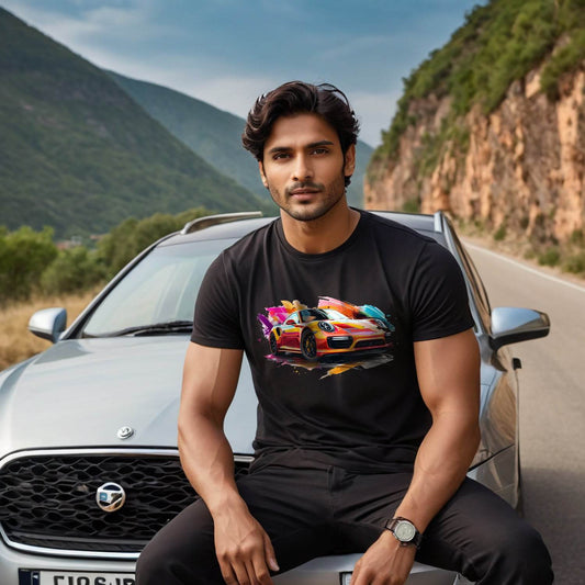 Colorful Car - Unisex Round Neck Regular Fit 100% Combed Cotton Half Sleeve T-Shirt