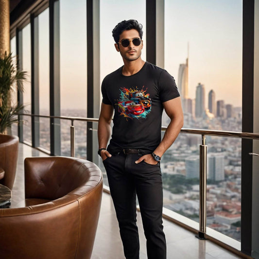 Cars Lightning McQueen - Unisex Round Neck Regular Fit 100% Combed Cotton Half Sleeve T-Shirt