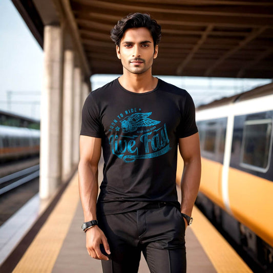 BORN TO RIDE NEVER SLOW DOWN Live FAST - Unisex Round Neck Regular Fit 100% Combed Cotton Half Sleeve T-Shirt