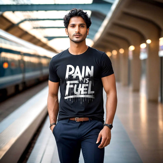 PAIN IS FUEL PRINT - Unisex Round Neck Regular Fit 100% Combed Cotton Half Sleeve T-Shirt