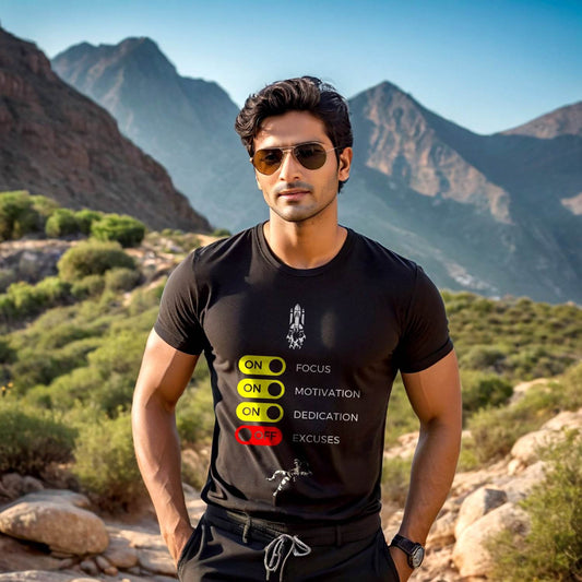 ON FOCUS ON MOTIVATION ON DEDICATION OFF EXCUSES - Unisex Round Neck Regular Fit 100% Combed Cotton Half Sleeve T-Shirt