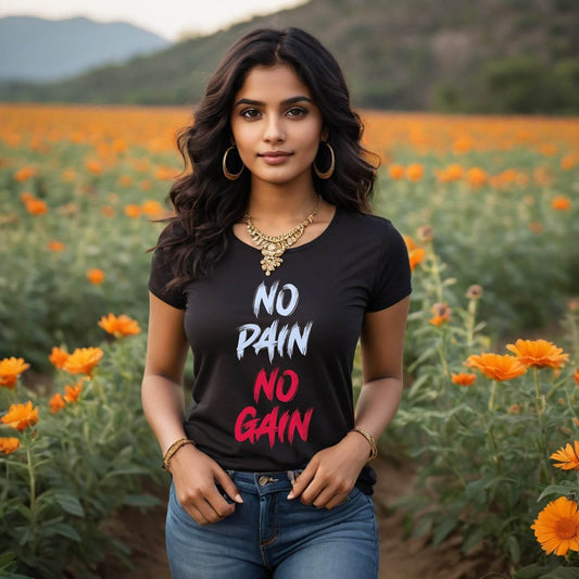 NO PAIN NO GAIN - Unisex Round Neck Regular Fit 100% Combed Cotton Half Sleeve T-Shirt