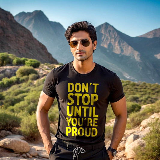 DON'T STOP UNTIL YOU'RE PROUD - Unisex Round Neck Regular Fit 100% Combed Cotton Half Sleeve T-Shirt