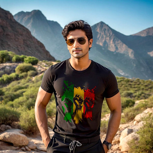 Five fists PanAfrican flag - Unisex Round Neck Regular Fit 100% Combed Cotton Half Sleeve T-Shirt
