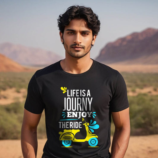 LIFE IS A JOURNY ENJOY THE RIDE - Unisex Round Neck Regular Fit 100% Combed Cotton Half Sleeve T-Shirt